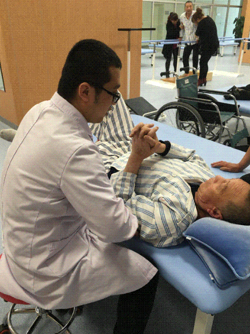 就拿我们的徐大爷来说吧。62岁的徐大爷,平素身体健康,但不幸却发生在了他的身上。2016年04月的一天,徐大爷突发意识不清,伴有左侧肢体无自主运动,右侧肢体偶可上抬,小便失禁。紧急拨打我院急救电话而被我院救护车送回我院。入急诊科后行头部CT检查后,诊断为“右侧基底节区脑出血破入脑室”,急诊科给予促醒,降颅内压后以“脑出血”收入院。因考虑徐大爷是急性起病,脑出血破入脑室铸型,脑积水,颅内出血可能继续增多,必要时需急诊开颅清除血肿,预后不良,且随时伴有生命危险。故需急诊行颅骨钻孔引流手术治疗。在我院神经外科医生的努力下,徐大爷脱离了生命危险。3周后,因左侧肢体偏瘫到我科给予左侧肢体康复训练。综合考虑徐大爷的病情,我科给予实施运动疗法,针灸,中频脉冲电,神经损伤等综合康复训练治疗。初期,徐大爷精神状态很差,对自己左侧肢体的康复不报有太大希望,表现的极度消沉。但是在我科医护人员及家属的鼓励下,徐大爷重拾信心,并坚信通过自己不断的努力,终有可以独立站立行走的一天。2个月后,徐大爷病情明显好转,左侧肢体肌力2级,可自主运动。看到徐大爷一天天的好转,我科全体人员都非常高兴。徐大爷非常感谢大家的细心照料,不再抱怨生活的不公,而是玩笑的说到这一病使得他从一个内向的人完全变成了一个开朗外向的人,自己的笑容也变多了。