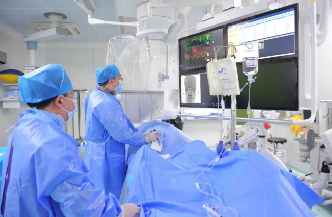 神经介入治疗的优势在此刻凸显无疑:1.精准微创:无需开颅,仅通过穿刺股动脉的微小切口,即可直达颅内病变血管。2.可优先处理最危险病变:在众多问题中,丁金明副院长带领神经介入团队精准判断,决定优先处理风险最高的“罪犯血管”——左侧颈内动脉重度狭窄。这是大脑前循环的主干道,一旦完全闭塞将导致大面积脑梗死,致残和致死率极高。3.一站式诊断与治疗:DSA不仅用于诊断,更在实时引导下为神经介入手术提供了“导航地图”,实现了诊断与治疗的无缝衔接。