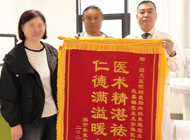 在医护人员的精心治疗与护理下,赵先生的术后恢复十分顺利。出院前夕,赵先生及家属特意定制了一面锦旗送到结直肠肛门外科手中,以表达对医护人员专业技术的高度赞扬。