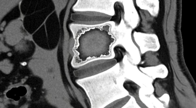 全腹增强CT检查揭示两项关键发现:腰3、4椎体骨质被破坏,右侧腰大肌形成巨大脓肿。结合影像结果及临床症状,医生最终确诊为腰椎结核——结核菌破坏脊柱后,沿肌肉间隙蔓延形成“冷脓肿”,波及阑尾区域引发类似阑尾炎的腹痛。超声率先捕捉脓肿线索,增强CT精准锁定脊柱病灶,二者协同让隐匿病灶无所遁形。
